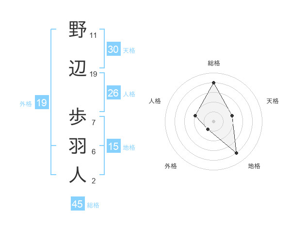 野辺 歩羽人さんを姓名の画数から五運を鑑定