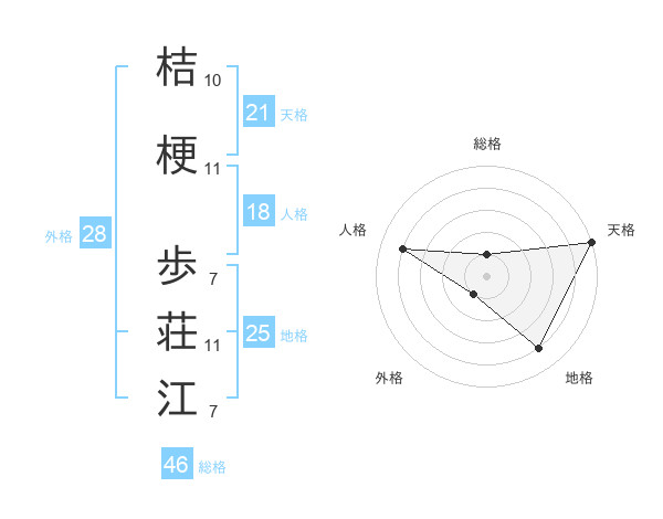 桔梗 歩荘江さんを姓名の画数から五運を鑑定