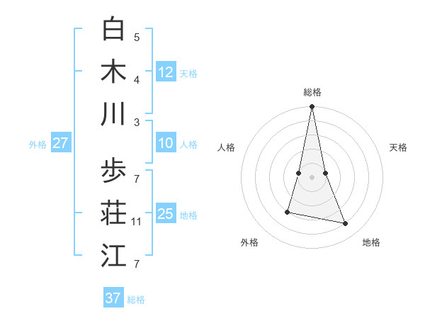 白木川 歩荘江さんを姓名の画数から五運を鑑定