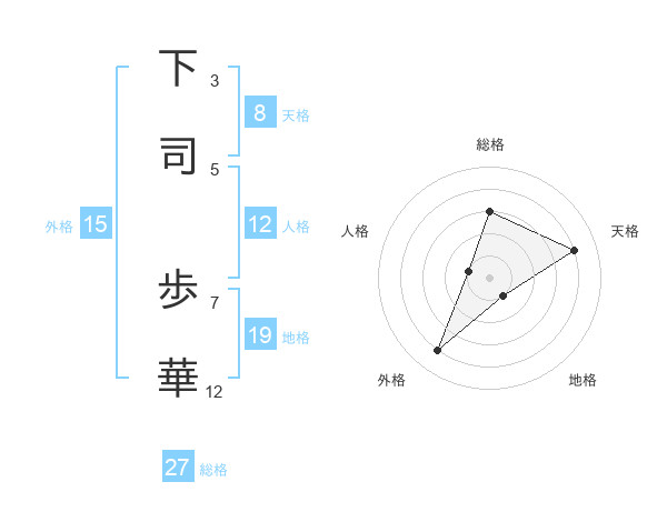 下司 歩華さんを姓名の画数から五運を鑑定