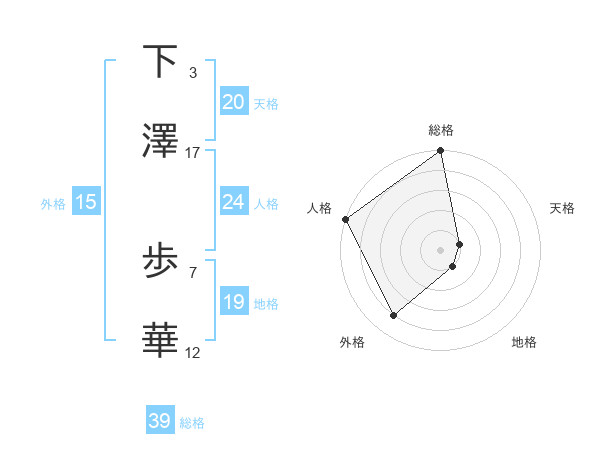 下澤 歩華さんを姓名の画数から五運を鑑定