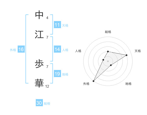 中江 歩華さんの外格は16画の5点!