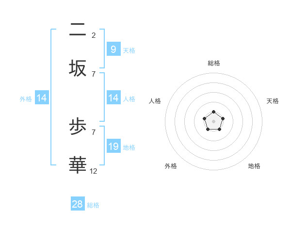 二坂 歩華さんの総格は28画の1点!