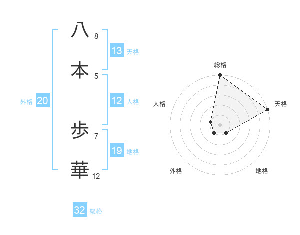 八本 歩華さんの総格は32画の5点!