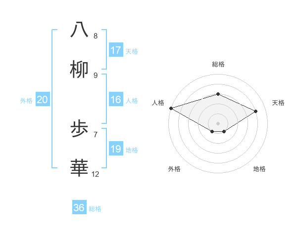 八柳 歩華さんの天格は17画の4点!