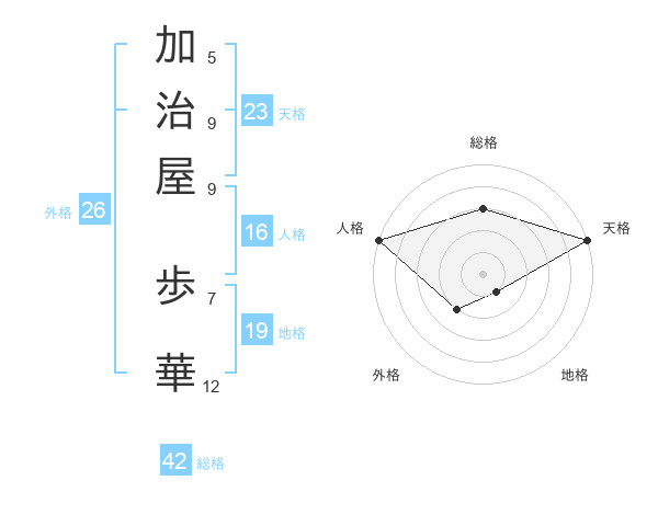加治屋 歩華さんの天格は23画の5点