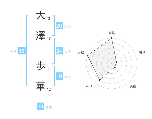 大澤 歩華さんの総格は39画の5点!