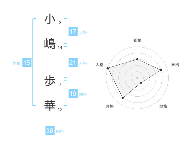 小嶋 歩華さんの天格は17画の4点!