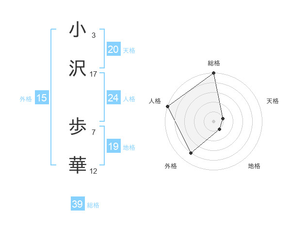 小沢 歩華さんを姓名の画数から五運を鑑定