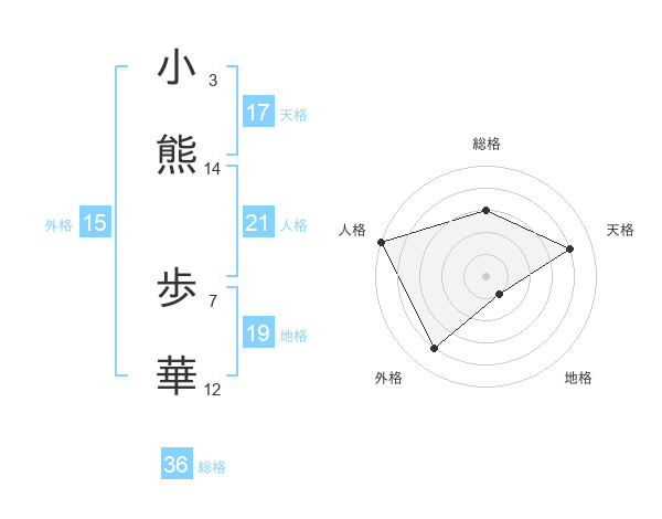 小熊 歩華さんの天格は17画の4点!