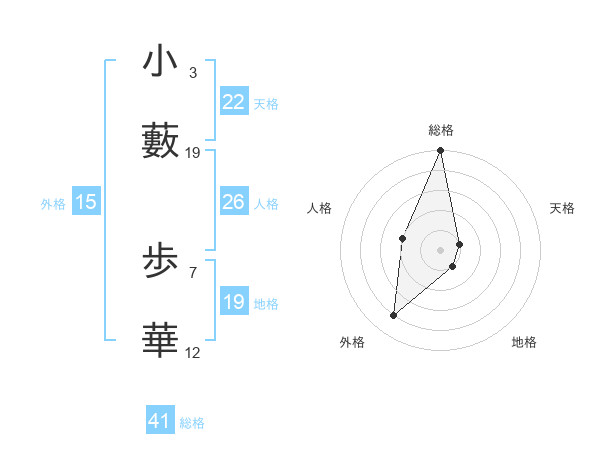 小藪 歩華さんの天格は22画の1点!