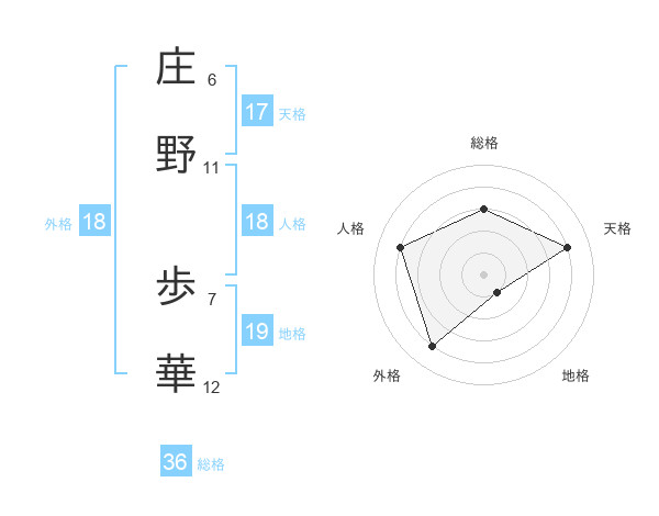 庄野 歩華さんの総格は36画の3点!