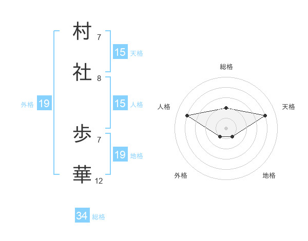 村社 歩華さんの総格は34画の2点!