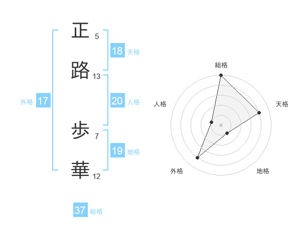 正路 歩華さんの総格は37画の5点!