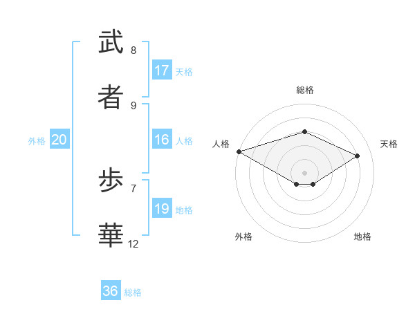 武者 歩華さんの天格は17画の4点!
