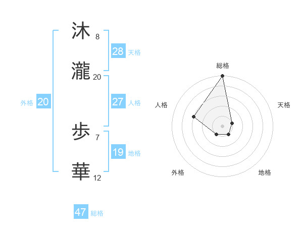 沐瀧 歩華さんを姓名の画数から五運を鑑定