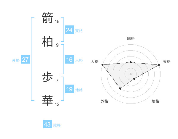 箭柏 歩華さんを姓名の画数から五運を鑑定