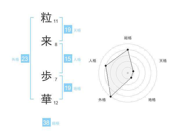 粒来 歩華さんの総格は38画の4点!