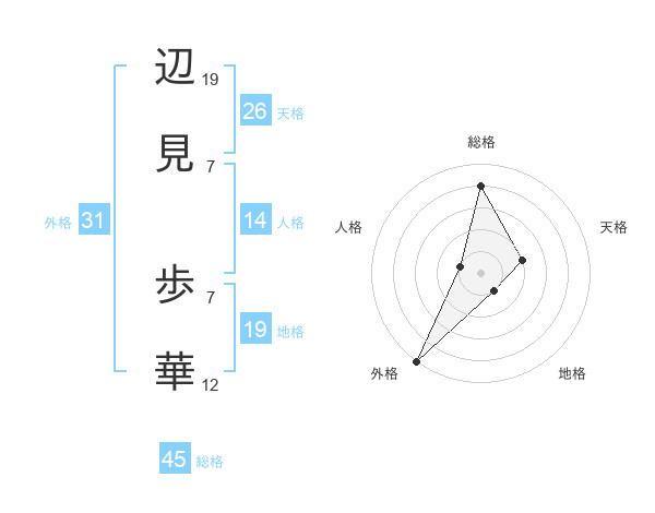 辺見 歩華さんの総格は45画の4点!