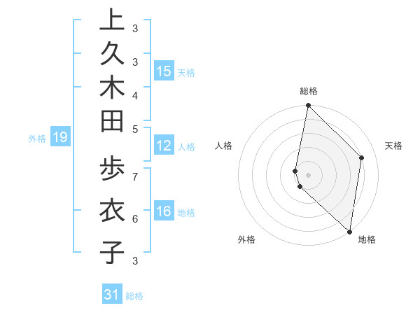 上久木田 歩衣子さんを姓名の画数から五運を鑑定