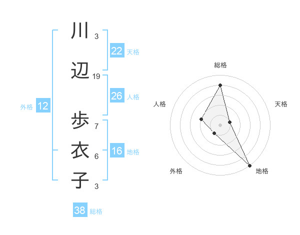 川辺 歩衣子さんを姓名の画数から五運を鑑定