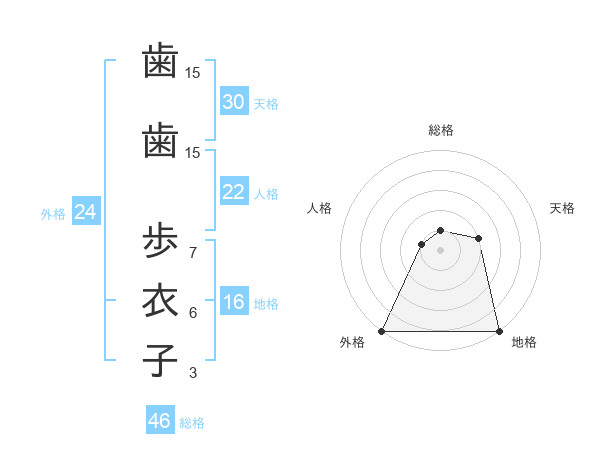 歯歯 歩衣子さんの総格は46画の1点!