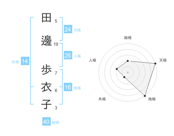 田邊 歩衣子さんを姓名の画数から五運を鑑定