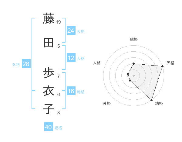 藤田 歩衣子さんを姓名の画数から五運を鑑定