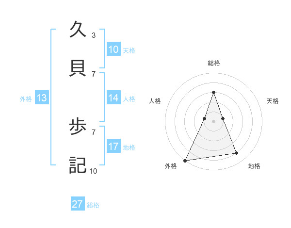 久貝 歩記さんを姓名の画数から五運を鑑定