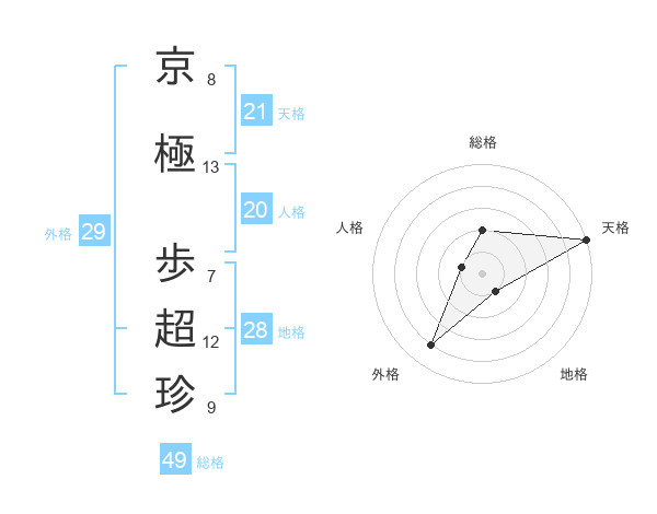 京極 歩超珍さんの総格は49画の2点!