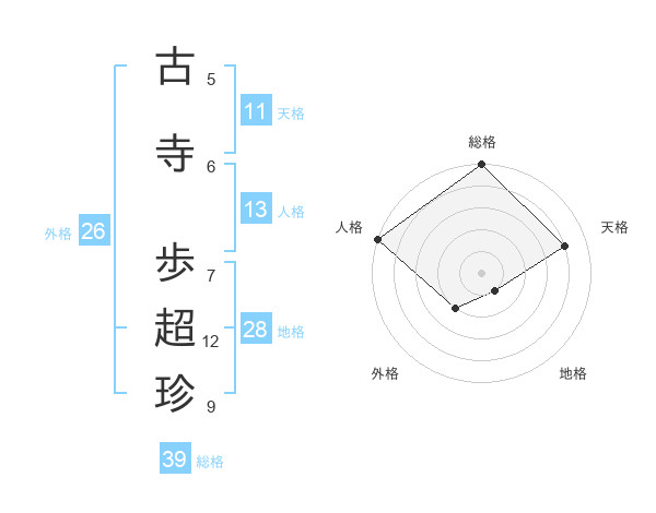 古寺 歩超珍さんの総格は39画の5点!