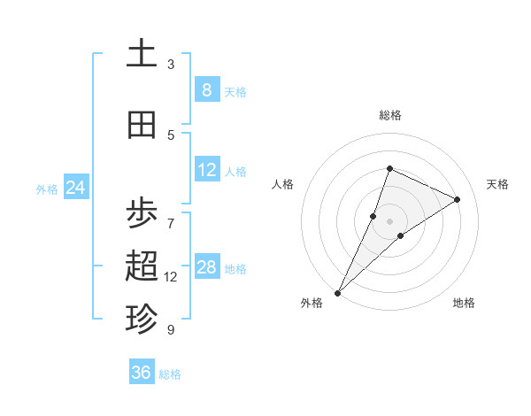 土田 歩超珍さんの天格は8画の4点!