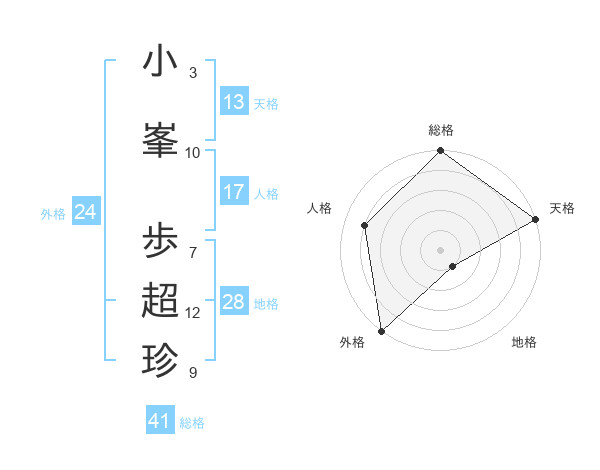 小峯 歩超珍さんの総格は41画の5点!