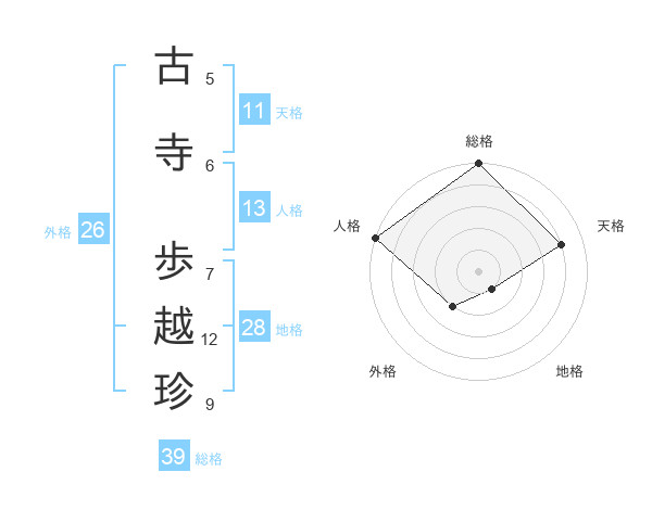 古寺 歩越珍さんの総格は39画の5点!