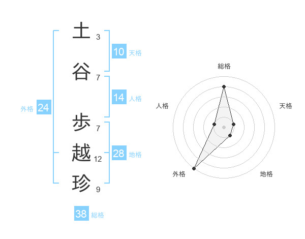 土谷 歩越珍さんを姓名の画数から五運を鑑定
