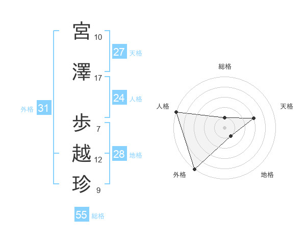 宮澤 歩越珍さんを姓名の画数から五運を鑑定