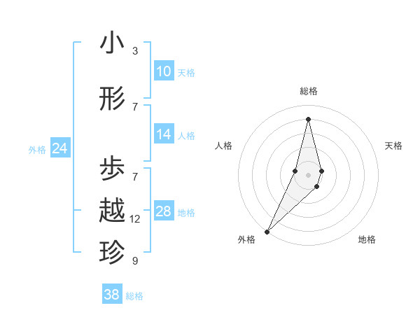 小形 歩越珍さんを姓名の画数から五運を鑑定
