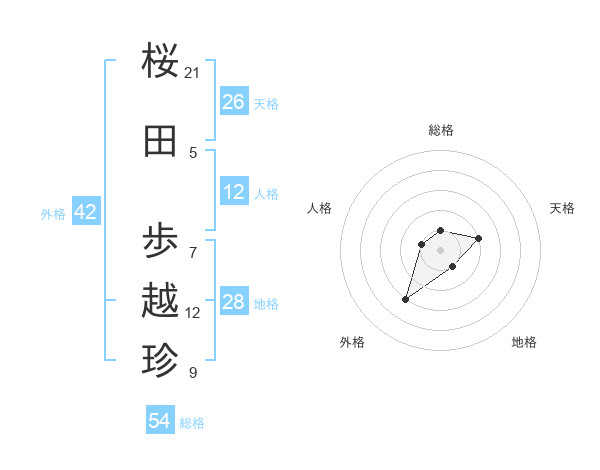 桜田 歩越珍さんを姓名の画数から五運を鑑定
