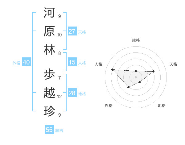 河原林 歩越珍さんを姓名の画数から五運を鑑定