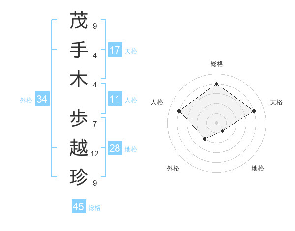 茂手木 歩越珍さんを姓名の画数から五運を鑑定