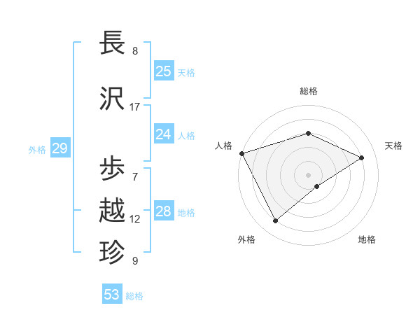 長沢 歩越珍さんの総格は53画の3点!