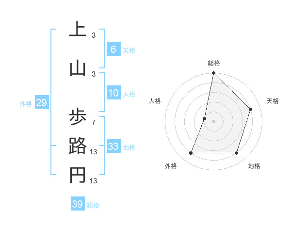 上山 歩路円さんの総格は39画の5点!