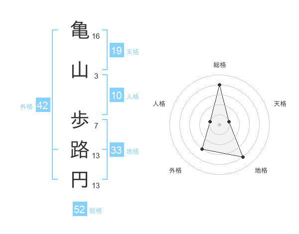 亀山 歩路円さんを姓名の画数から五運を鑑定