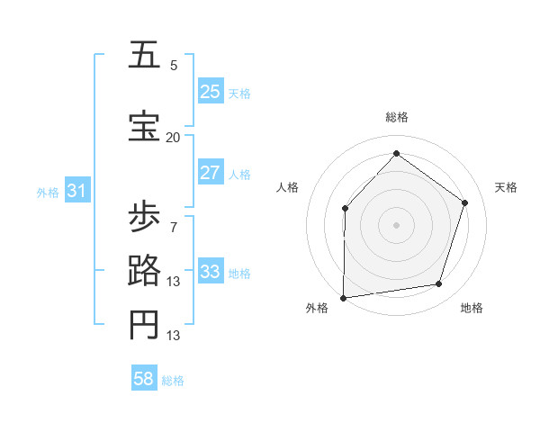 五宝 歩路円さんを姓名の画数から五運を鑑定