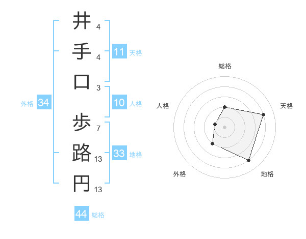 井手口 歩路円さんを姓名の画数から五運を鑑定