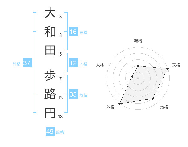 大和田 歩路円さんの外格は37画の5点!