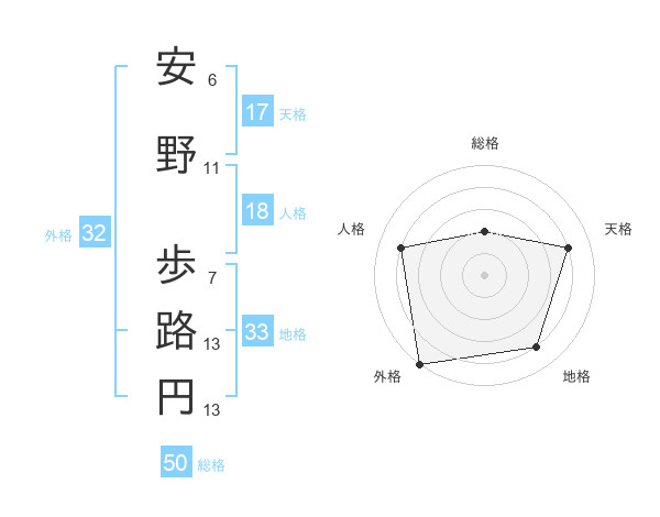 安野 歩路円さんの総格は50画の2点!