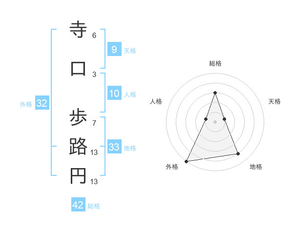 寺口 歩路円さんを姓名の画数から五運を鑑定