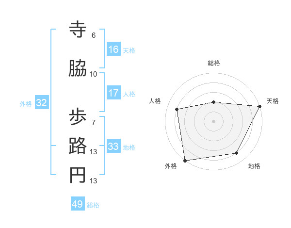 寺脇 歩路円さんを姓名の画数から五運を鑑定