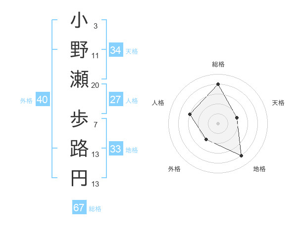 小野瀬 歩路円さんを姓名の画数から五運を鑑定